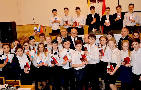 - Вы должны бережно относиться к полученному документу и достойно нести высокое звание гражданина Российской Федерации. На данном этапе жизни ваша обязанность учиться на «хорошо» и «отлично», так как будущее России зависит от молодого, грамотного поколения, - подчеркнул Владимир Ткаченко.
